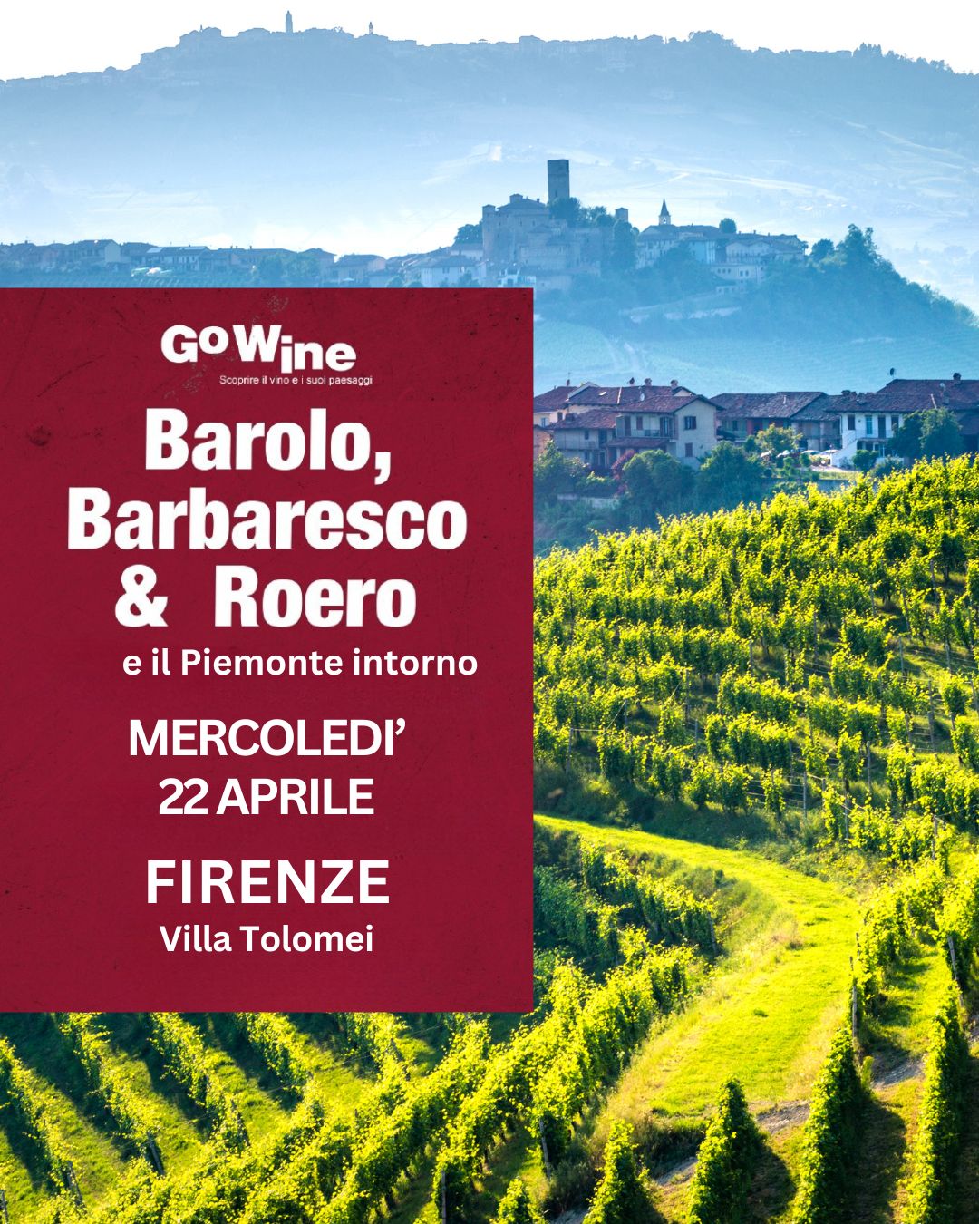 A Firenze, nell'elegante Villa Tolomei l'evento di degustazione Go Wine dedicato alle nuove annate (e non solo) del Barolo, del Barbaresco e del Roero